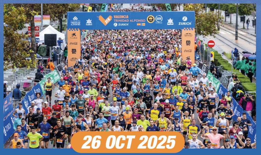 Este domingo 26 de octubre se celebra la edición número 34 del Medio Maratón Valencia Trinidad Alfonso Zurich, una carrera que promete emociones fuertes y que, un año más, ha agotado sus dorsales en tiempo récord. La carrera, que ostenta récords mundiales en la distancia, comenzará a las 8:25 horas desde la Avenida de Tarongers. Se espera que miles de corredores, tanto élite como populares, disfruten del rapidísimo circuito que recorre los puntos más emblemáticos de la ciudad, diseñado para conseguir las mejores marcas personales. El evento no solo transformará la movilidad de la ciudad, sino que concentrará una gran actividad en la Expo 21K de Feria Valencia durante todo el fin de semana, sirviendo de pistoletazo de salida a la gran fiesta del fondo valenciano.**¡NO TE LO PIERDAS!** Tienes la información completa del evento, recorrido, horarios y cortes de tráfico en el siguiente enlace: